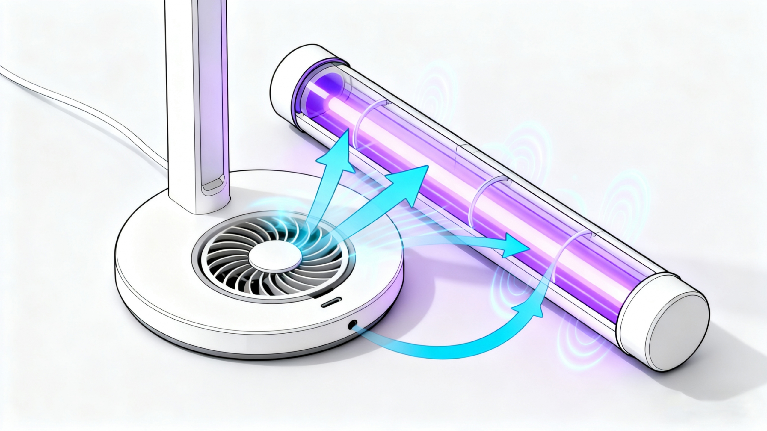 双重消毒模式:新产品通常具有“空气消毒”和“表面消毒”两种模式。通过微型风扇创造的内部循环气流,将空气中的悬浮细菌和病毒吸入装置,经过UVC照射,然后释放清洁空气。同时,朝上的UVC光源直接照射天花板,并通过漫反射覆盖整个房间,为家具和地板等表面提供360°无缝消毒。实验室数据表明,对各种常见病原体的灭活率超过99.9%。
