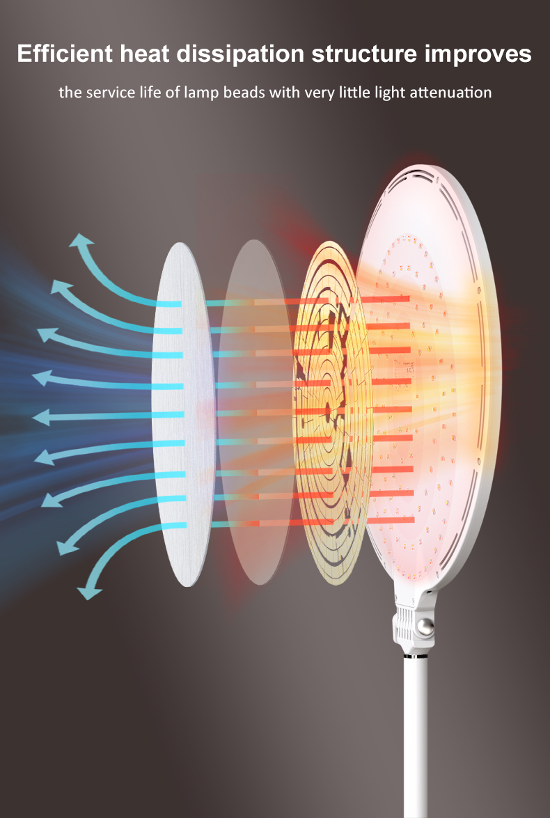 1、Features a side-emitting lighting design with a 26 cm lamp head diameter, delivering soft, glare-free illumination.